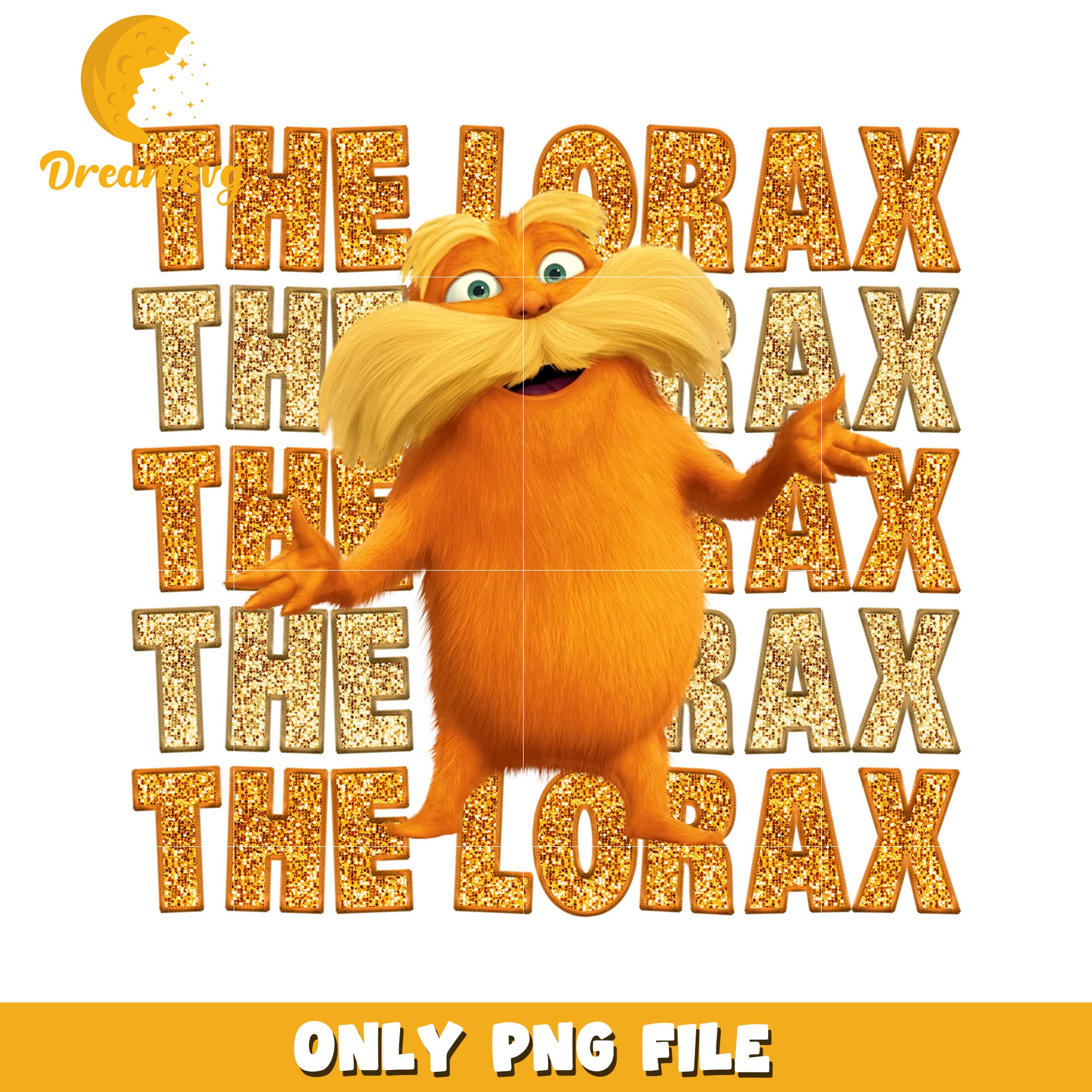 Glitter the lorax png is a product of our Dr. Seuss collection! Inspired by the quirky world of Dr. Seuss, this collection features high-quality designs of beloved characters like the Cat in the Hat, Thing 1 and Thing 2, and Horton. Perfect for creating fun projects like party invitations, t-shirts, and classroom decorations, these PNG files are easy to use and compatible with popular design software. Whether you're celebrating Dr. Seuss Day, creating educational materials, or making personalized gifts, our Dr. Seuss PNG collection will add a little playful magic to your creations.