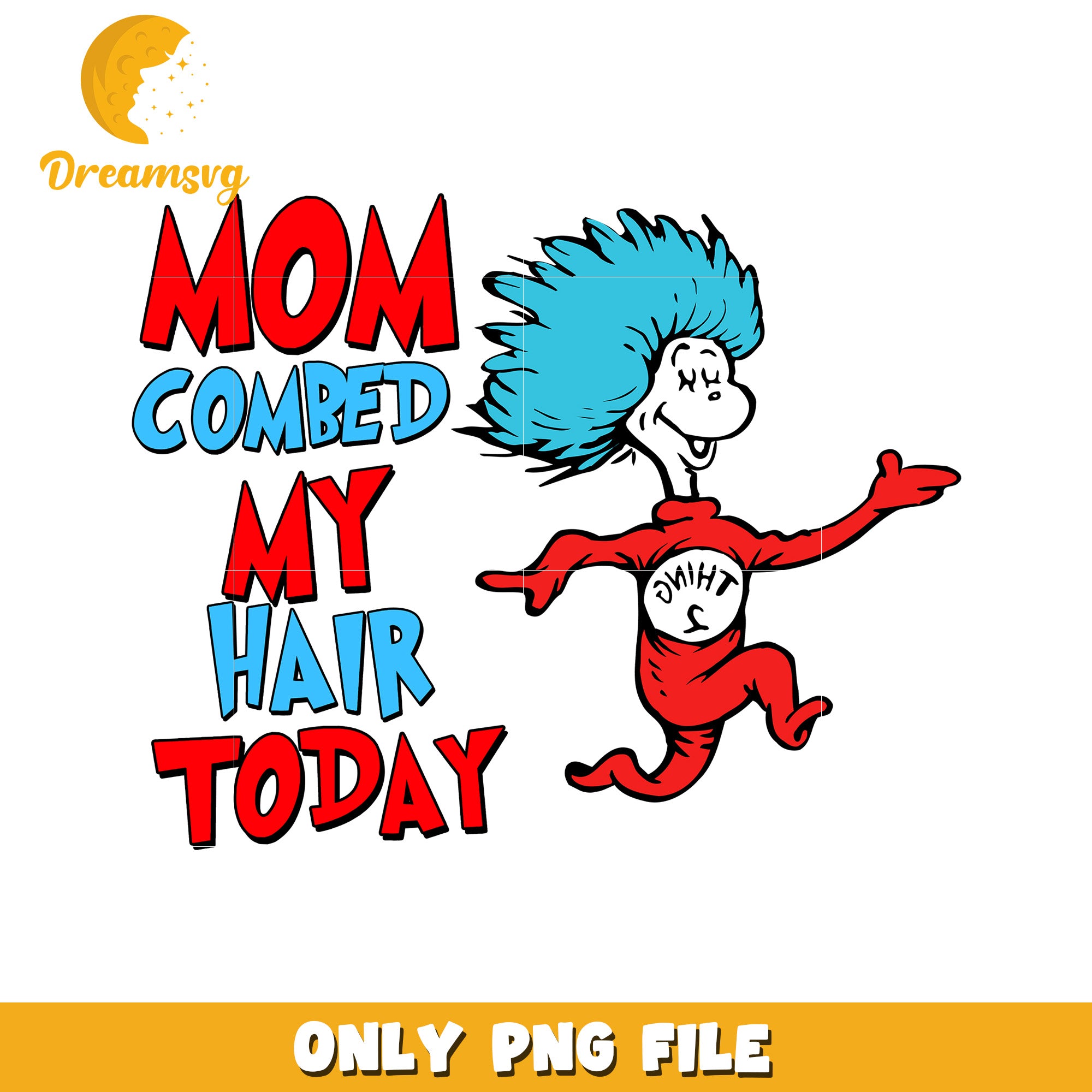 Mom Combed My Hair Today PNG is a product of our Dr. Seuss collection! Inspired by the quirky world of Dr. Seuss, this collection features high-quality designs of beloved characters like the Cat in the Hat, Thing 1 and Thing 2, and Horton. Perfect for creating fun projects like party invitations, t-shirts, and classroom decorations, these PNG files are easy to use and compatible with popular design software. Whether you're celebrating Dr. Seuss Day, creating educational materials, or making personalized gifts, our Dr. Seuss PNG collection will add a little playful magic to your creations.