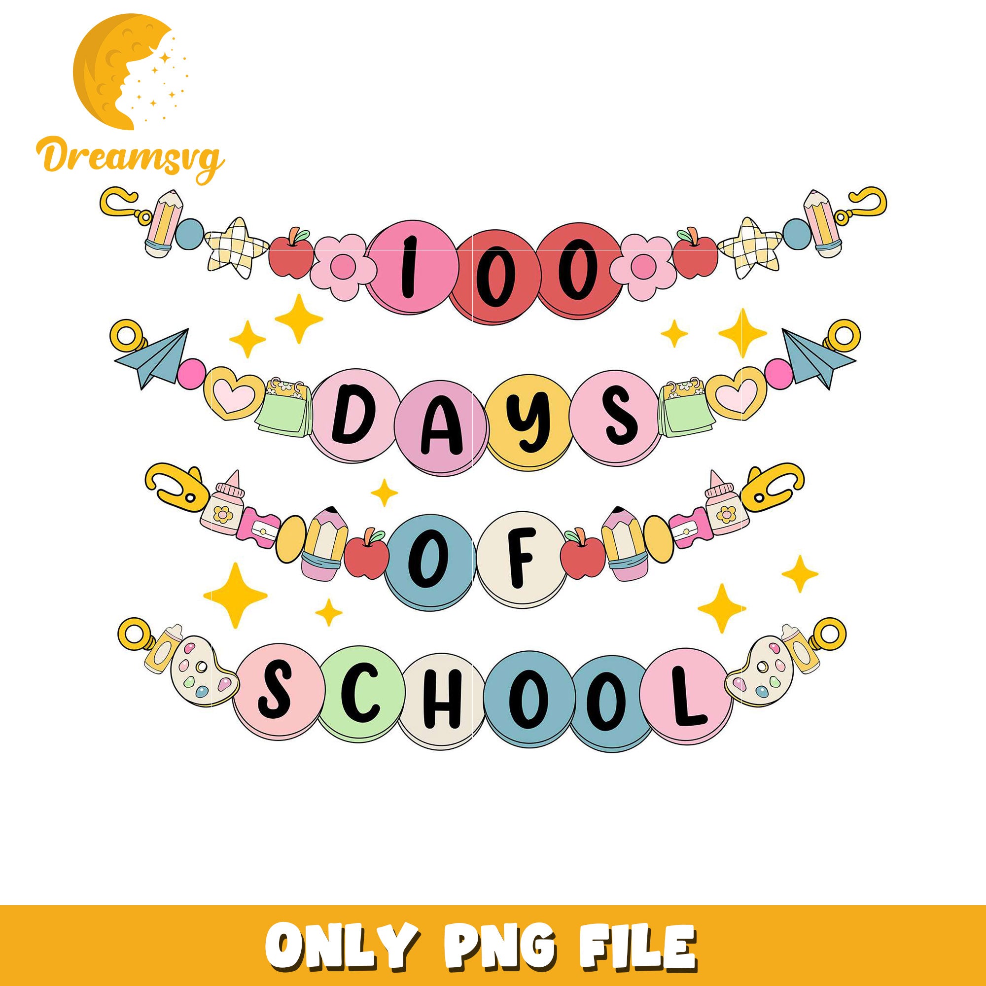 100 Days of School Colorful Bead PNG Design File