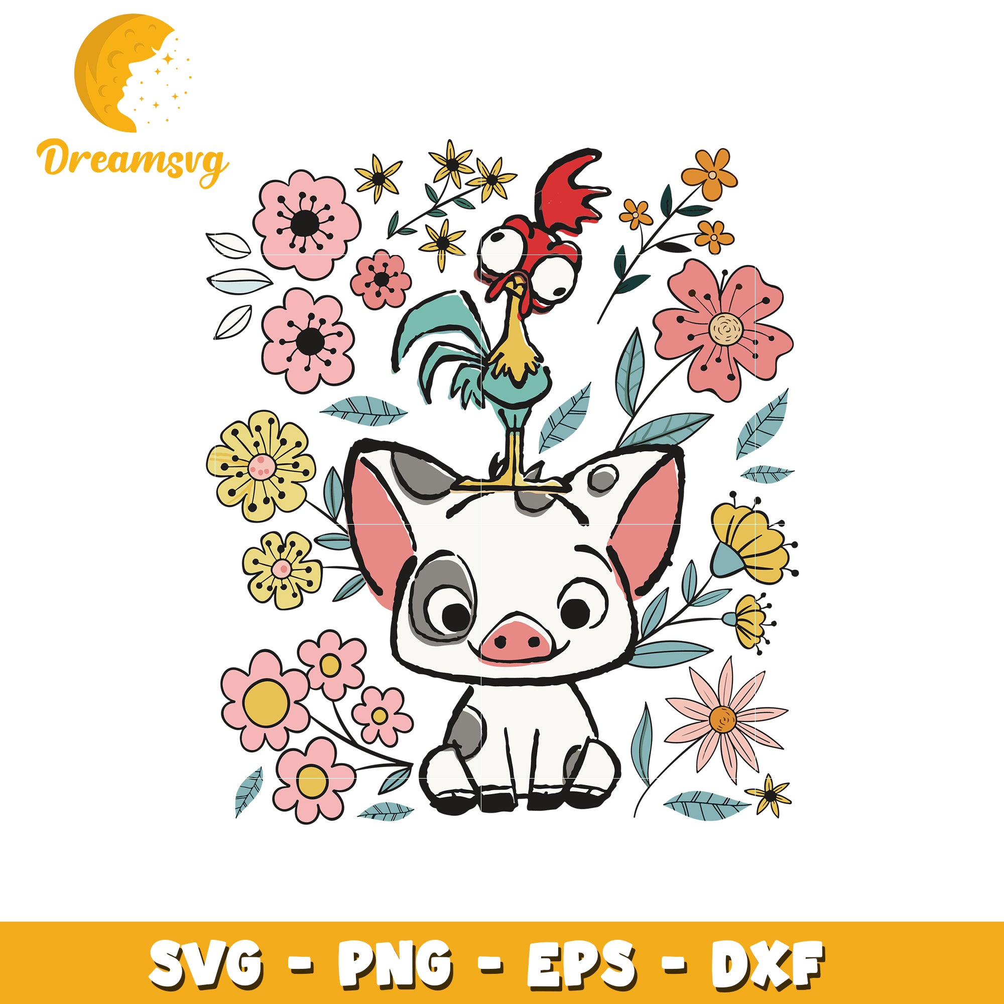 Option 1 (Focus on character) Cute Pua Moana SVG, PNG, EPS, DXF Files